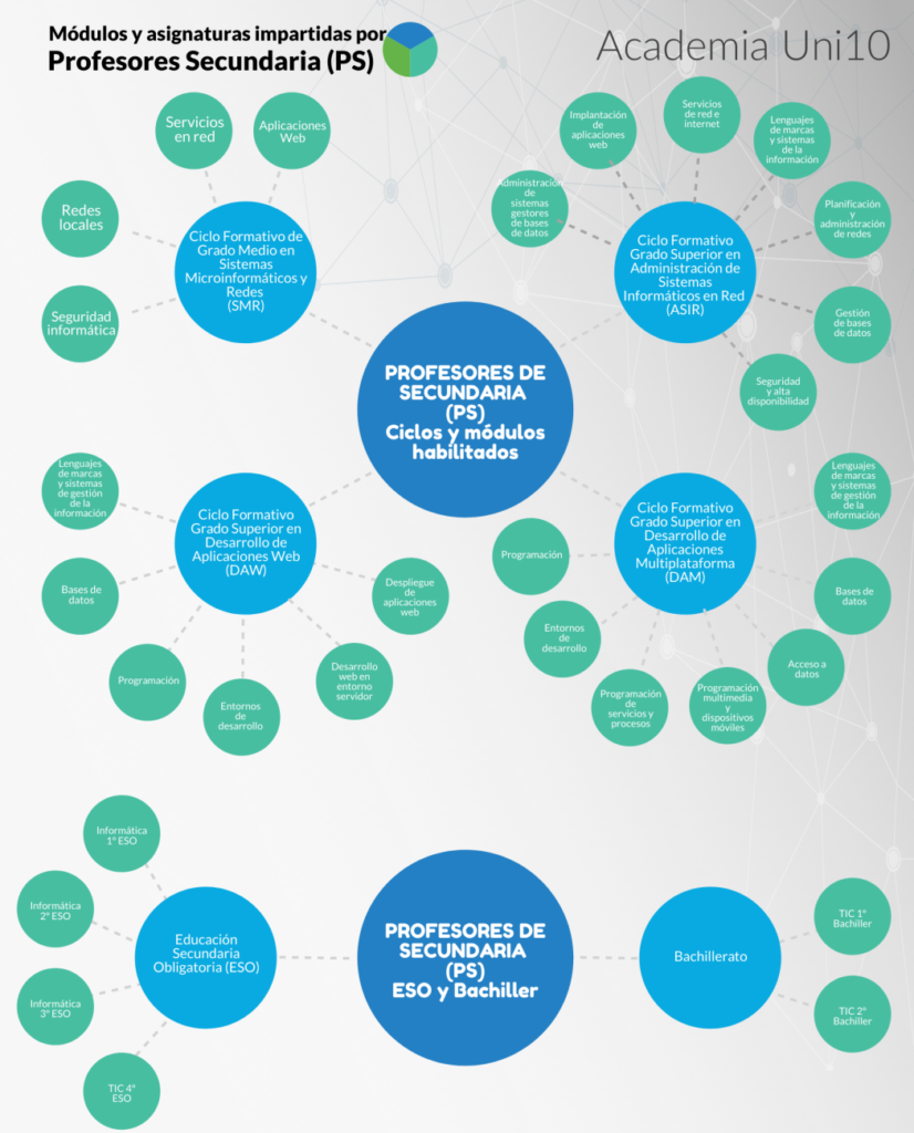 Un profesor de Secundaria puede impartir las siguientes asignaturas o módulos: